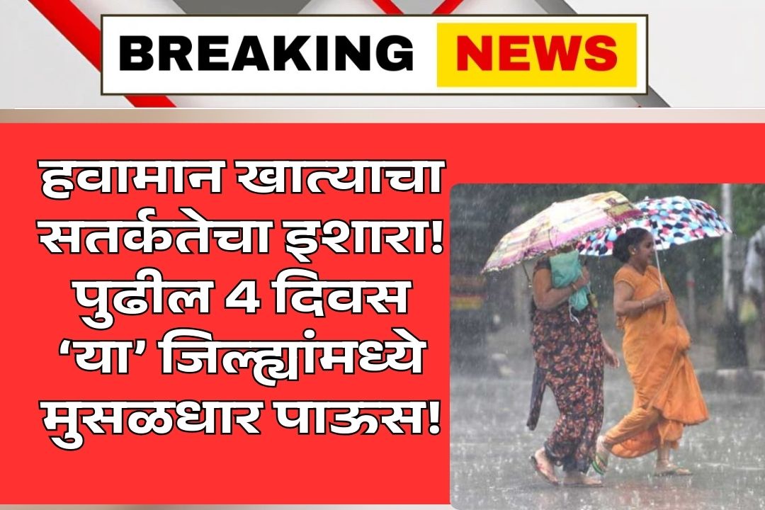 हवामान खात्याचा सतर्कतेचा इशारा! पुढील 4 दिवस ‘या’ जिल्ह्यांमध्ये मुसळधार पाऊस!